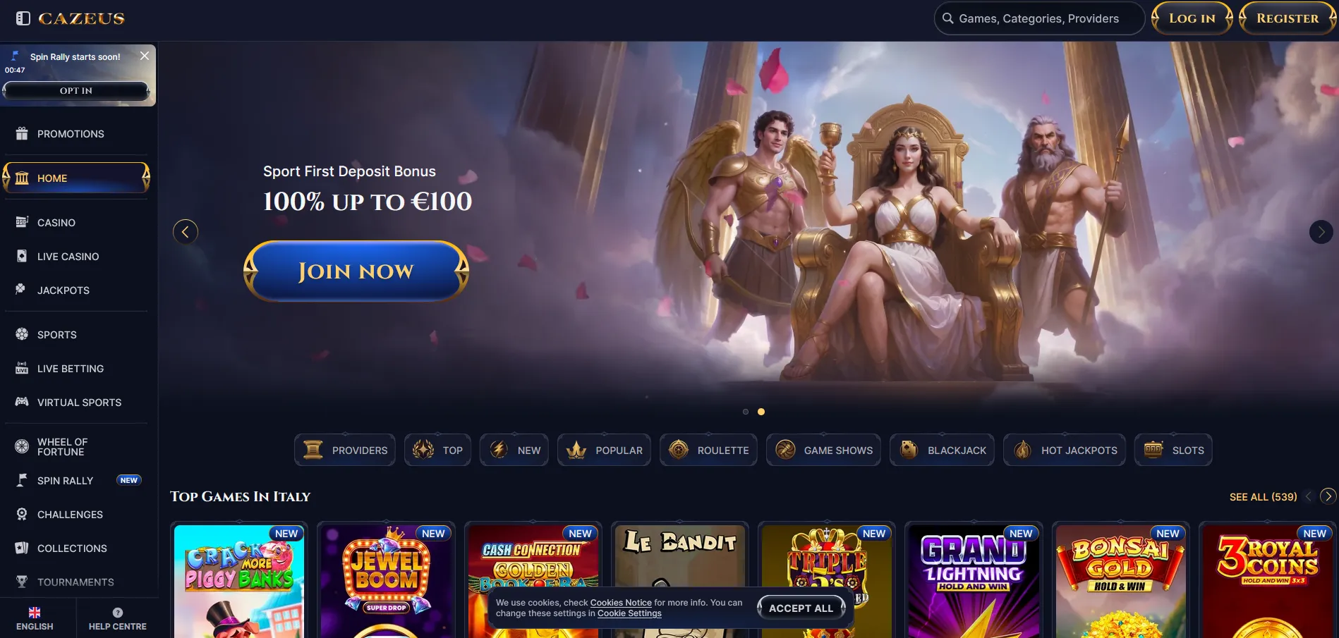 Online casino Cazues víta hráčov zo Slovakia štedrým bonusom: 100 % bonus k prvému vkladu až do 500 € + 200 voľných zatočení na vybrané automaty 🎁. Stačí sa zaregistrovať, overiť účet a urobiť minimálny vklad 20 €, aby ste si užili tento uvítací balík v online kasine vhodnom pre slovenských hráčov.